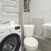 Санузел совмещенный. Уложена новая плитка. Заменен полотенцесушитель. Остается при продаже стиральная машина LG. Установлена новая газовая плита. Новый холодильник.