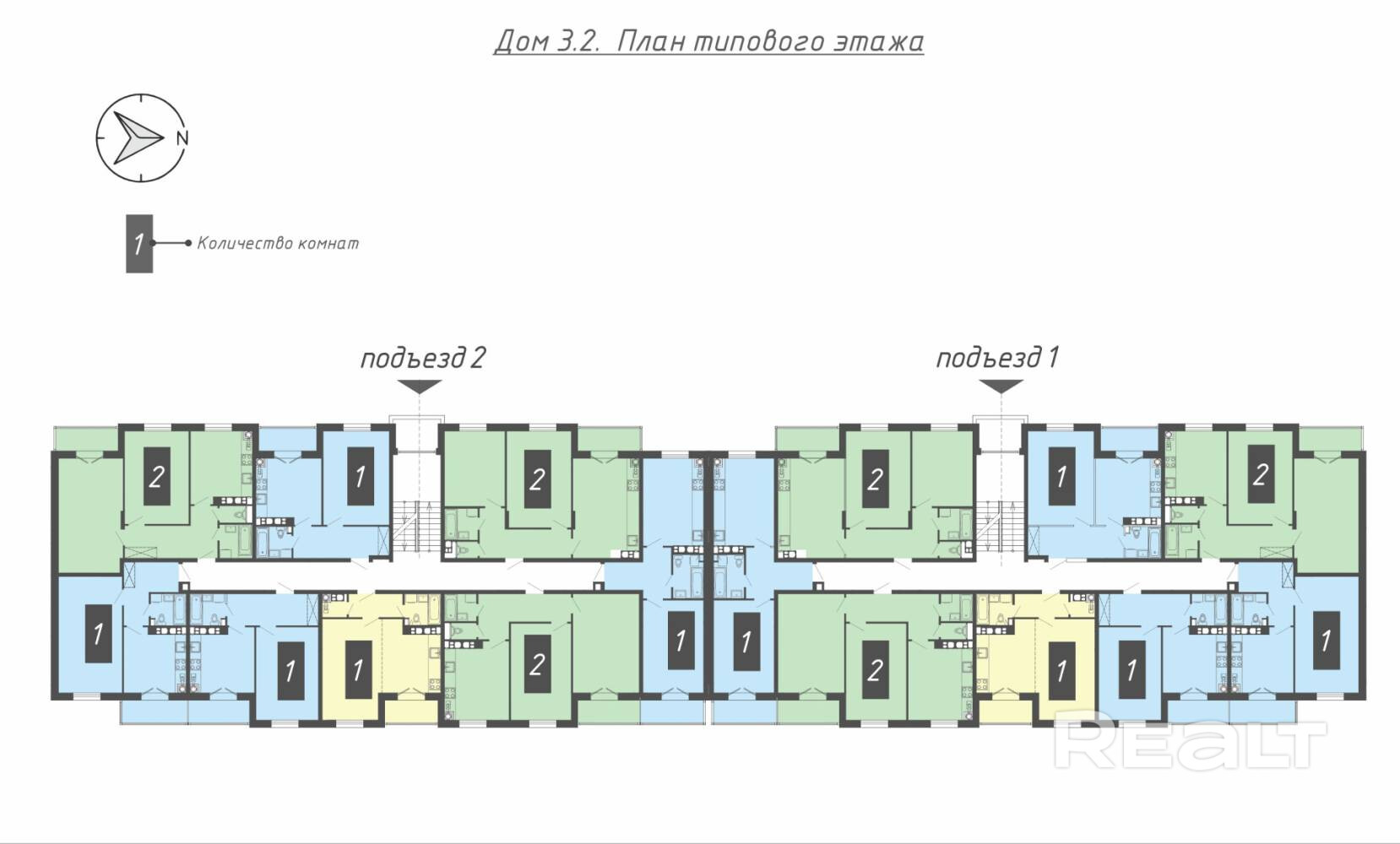 2-подъездный 5 этажный монолитно-каркасный дом.