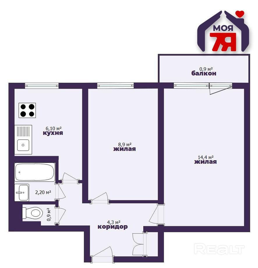 - Планировка удобная и функциональная. Просторная жилая комната 14,4 м2 станет местом, где вся семья собирается вечерами - для отдыха, просмотра фильмов или встреч с друзьями. Вторая комната - 8,9 м2 - идеально подойдёт под спальню, детскую или кабинет для работы.