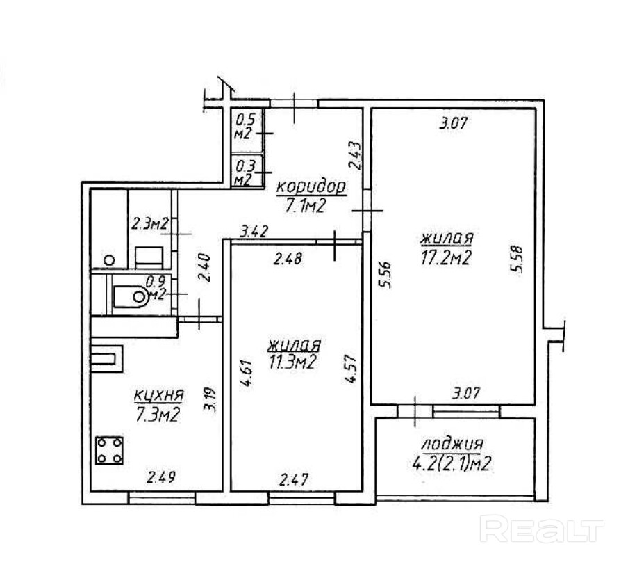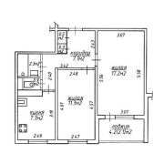 Планировка включает в себя две изолированные комнаты, просторную гостиную, отдельную спальню, кухню и раздельный санузел.