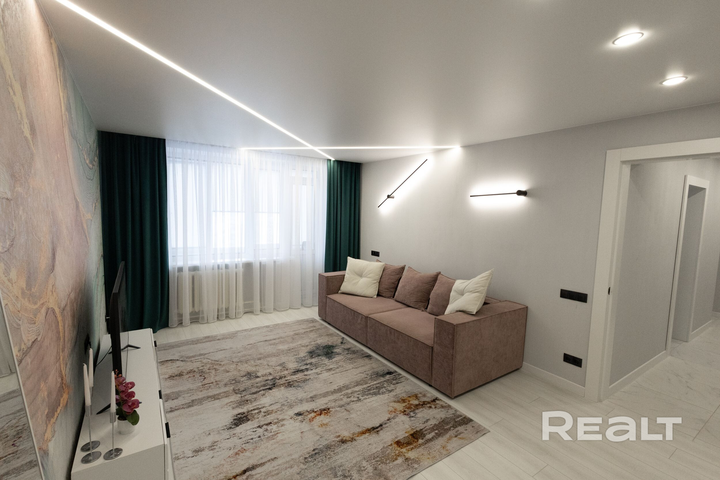 Продается светлая квартира в центре г. Минска. Две лоджии 3,8 и 5,8 м2, подвал и технический этаж с возможностью выкупа. Свежий ремонт, почти вся мебель и техника остается. Заменена вся проводка, сантехнические трубы, все автоматы электрики в квартире.Кирпичный дом с толщиной стен от полуметра, что обеспечивает тишину.Хорошие соседи, прекрасный вид.В доме один подъезд. В доме расположен евроопт, почта, зоомагазин, аптека и др. Рядом ТЦ "Корона", фитнес-залы, бассейны, детский сад, школа.