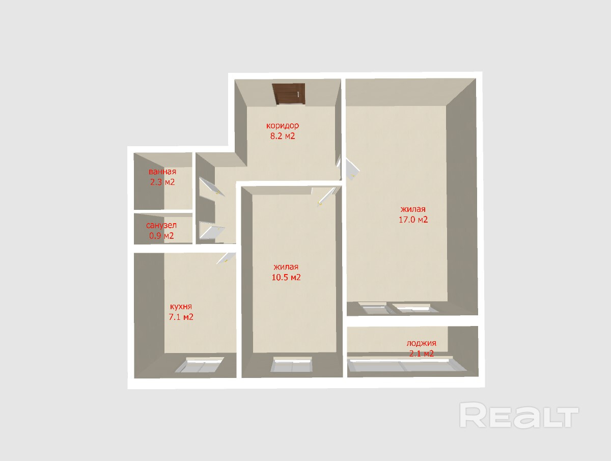 — 17,0 кв.м— просторная, светлая комната с выходом на застекленный балкон