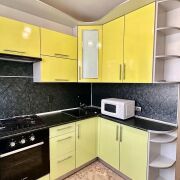 - Кухня площадью 6,1 м2 — аккуратная, функциональная, с кухонным гарнитуром и бытовой техникой. Санузел раздельный, облицован плиткой.