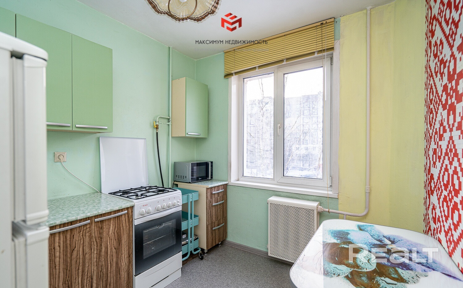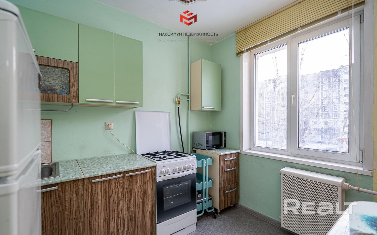 При продаже остается кухня, холодильник, стиральная машинка, мебель в комнате.