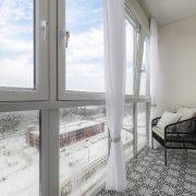 -Застеклённая лоджия — полноценное продолжение жилого пространства, причём с подогревом пола, поэтому её можно использовать круглый год: под кабинет, лаунж-зону или хранение.
