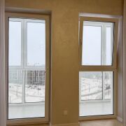Квартира очень светлая так как в комнате два окна в пол, которые выходят на Юго-Восточную сторону. Лоджия тоже застеклена в пол, на неё выведен свет и розетка, уложена плитка, отличный вид, взгляд никуда не упирается.