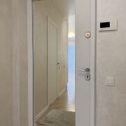 В квартиру заведено оптоволокно, установлен видеодомофон и входная металлическая дверь с зеркальной накладкой.