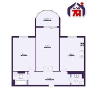 -Общая площадь составляет 77,1 кв.м., жилая - 38,8 кв.м.