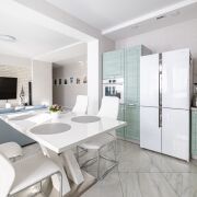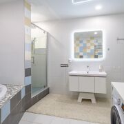 Cтильная и уютная 3-комнатная квартира площадью 100 м2 в современном доме. Квартира полностью готова к проживанию — хороший ремонт в светлых тонах, удобная планировка, современная мебель и техника. Светлое пространство без, лишних перегородок, тесных коридоров, ощущение воздуха и простора.