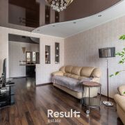 Светлая и просторная квартира общей площадью 103.4 м2 по СНБ. В квартире выполнен качественный ремонт. На кухне – встроенная мебель с бытовой техникой. На полу ламинат и плитка. Межкомнатные двери МДФ. Два санузла облицованы современной плиткой, оснащены качественной сантехникой.