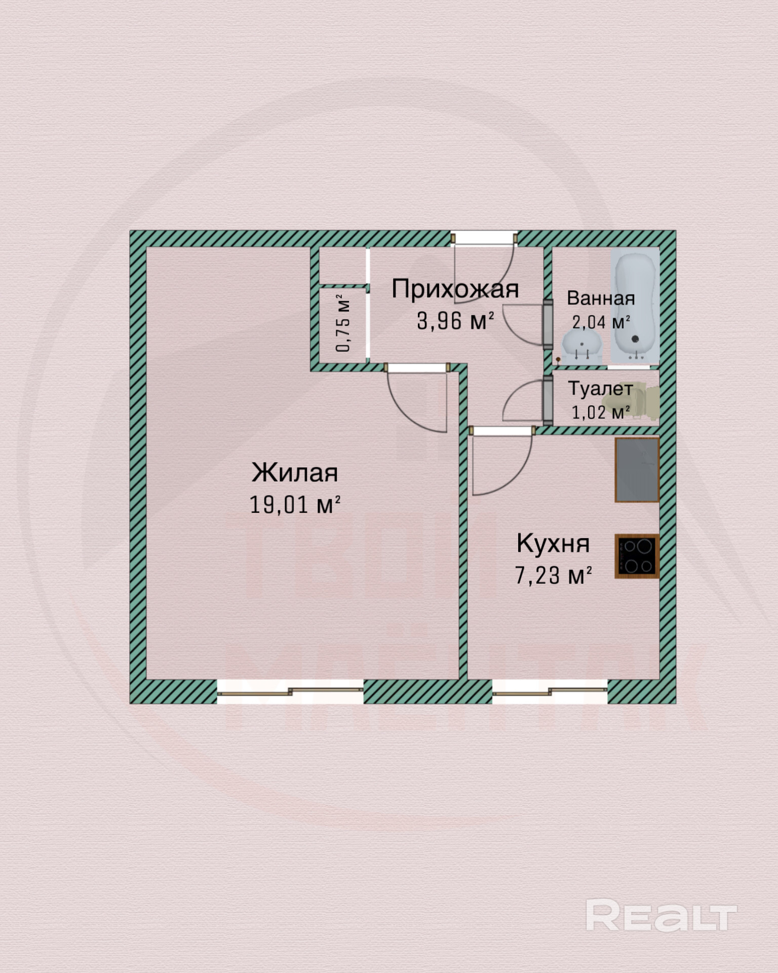 19.01 м²