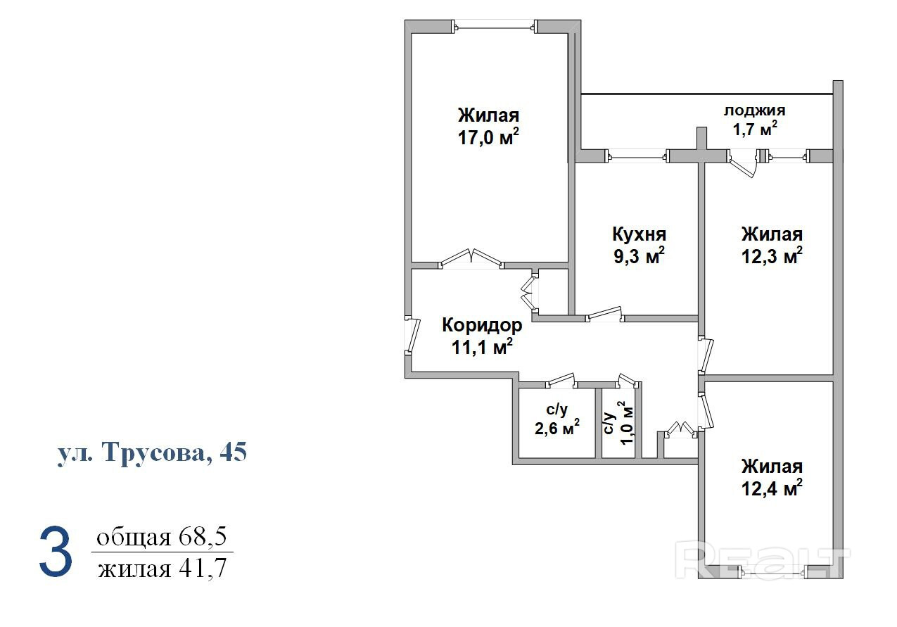 Купить 3-комнатную квартиру, г. Борисов, ул. Трусова, 45