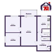 - Квартира расположена на 3 этаже 5-этажного дома, состоит из трёх комнат, что удобно для семьи или грамотного зонирования пространства. Комнаты правильной формы. Есть балкон, выход из жилой комнаты.