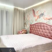 В спальне эксклюзивная, бесшовная, 5-метровая фреска под заказ из Москвы от ведущей фирмы “AFFRESCO”.