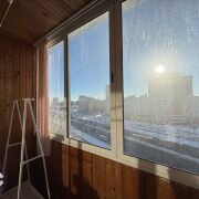 - Балкон обшит вагонкой;
