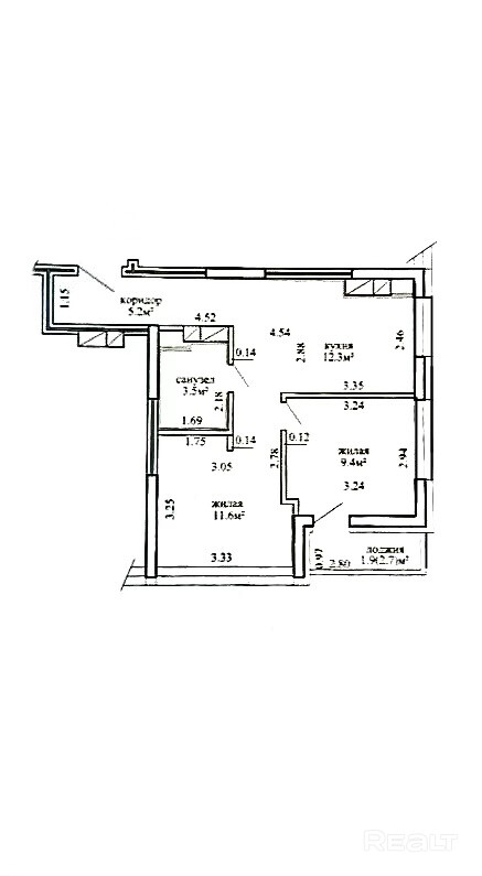✓ Две изолированные комнаты (11,6м2 и 9,4 м2) и кухня (12,3 м2).