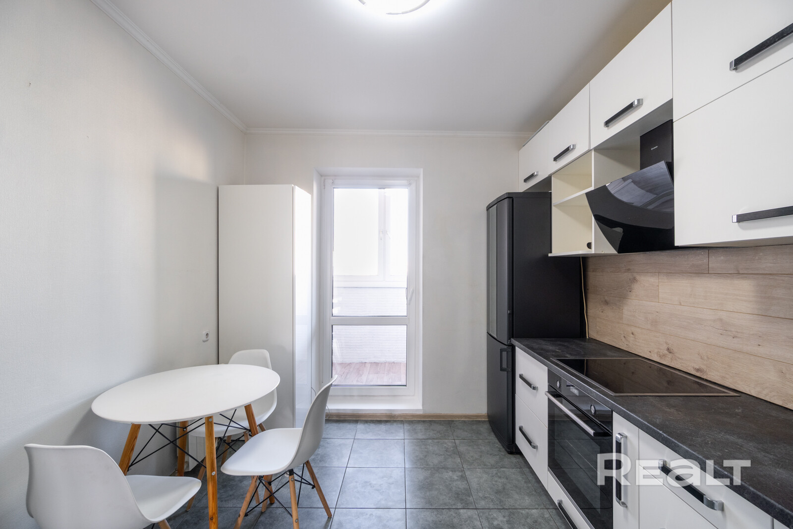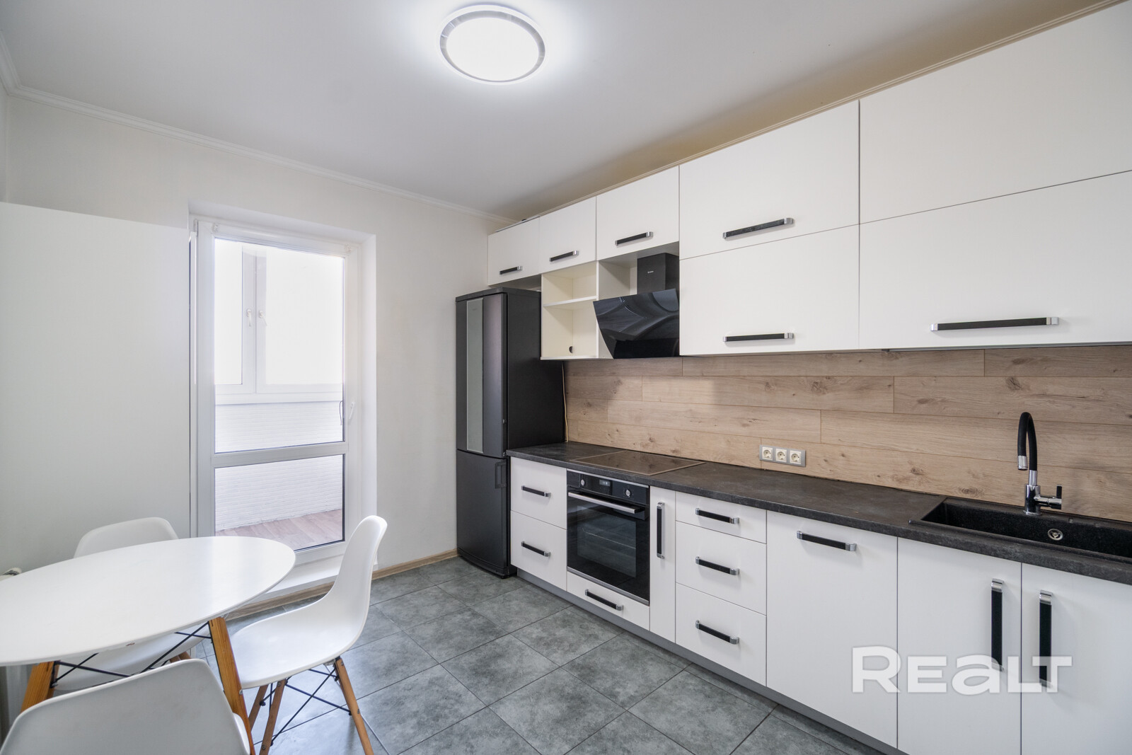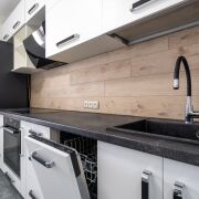- Встроенная мебель и техника на кухне.