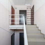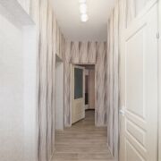 Заменена деревянная межэтажная лестница на монолитную бетонную, уложена плитка; проложены новые коммуникации, утеплен фасад снаружи, установлены ПВХ стеклопакеты.