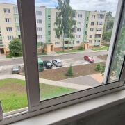 Квартира находится на четвертом этаже. Квартира чистая и аккуратная. Металлическая входная дверь, стеклопакеты в кухне, гостиной, на лоджии, есть интернет. Желательно в квартире освежить ремонт. Большая (16,4 м) комната имеет идеальную квадратную форму. Окна квартиры выходят на обе стороны дома, что создаёт условия для хорошей вентиляции. Дом находится в тихом дворе, окна не выходят на оживленную дорогу.