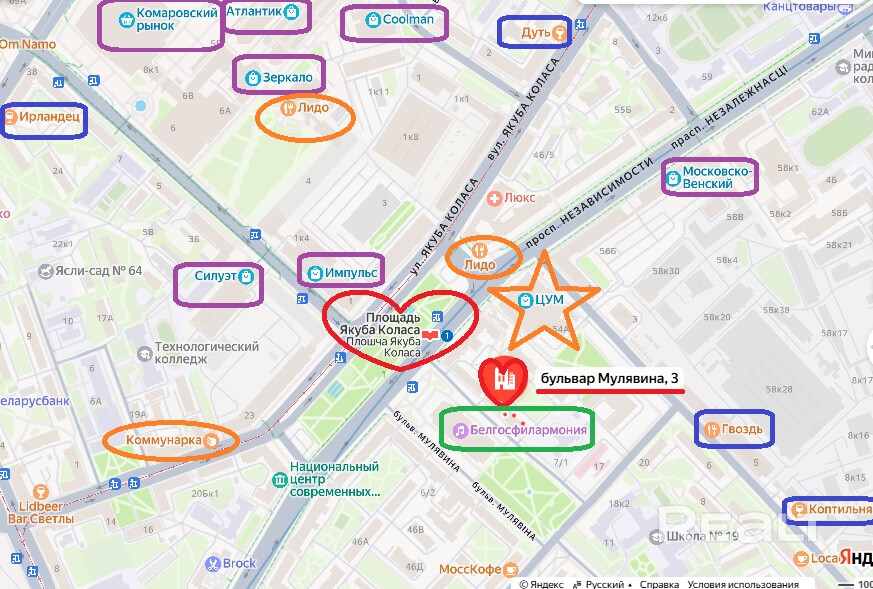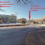 Удобное расположение: квартира находится в пешеходной доступности от ключевых городских объектов инфраструктуры, включая станцию метро Я.Коласа, филармонию, торговый центр ЦУМ, детские сады, школы и медицинские учреждения.