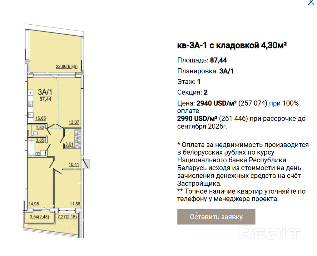 - стоимость машино-места 16000 по курсу НБРБ;