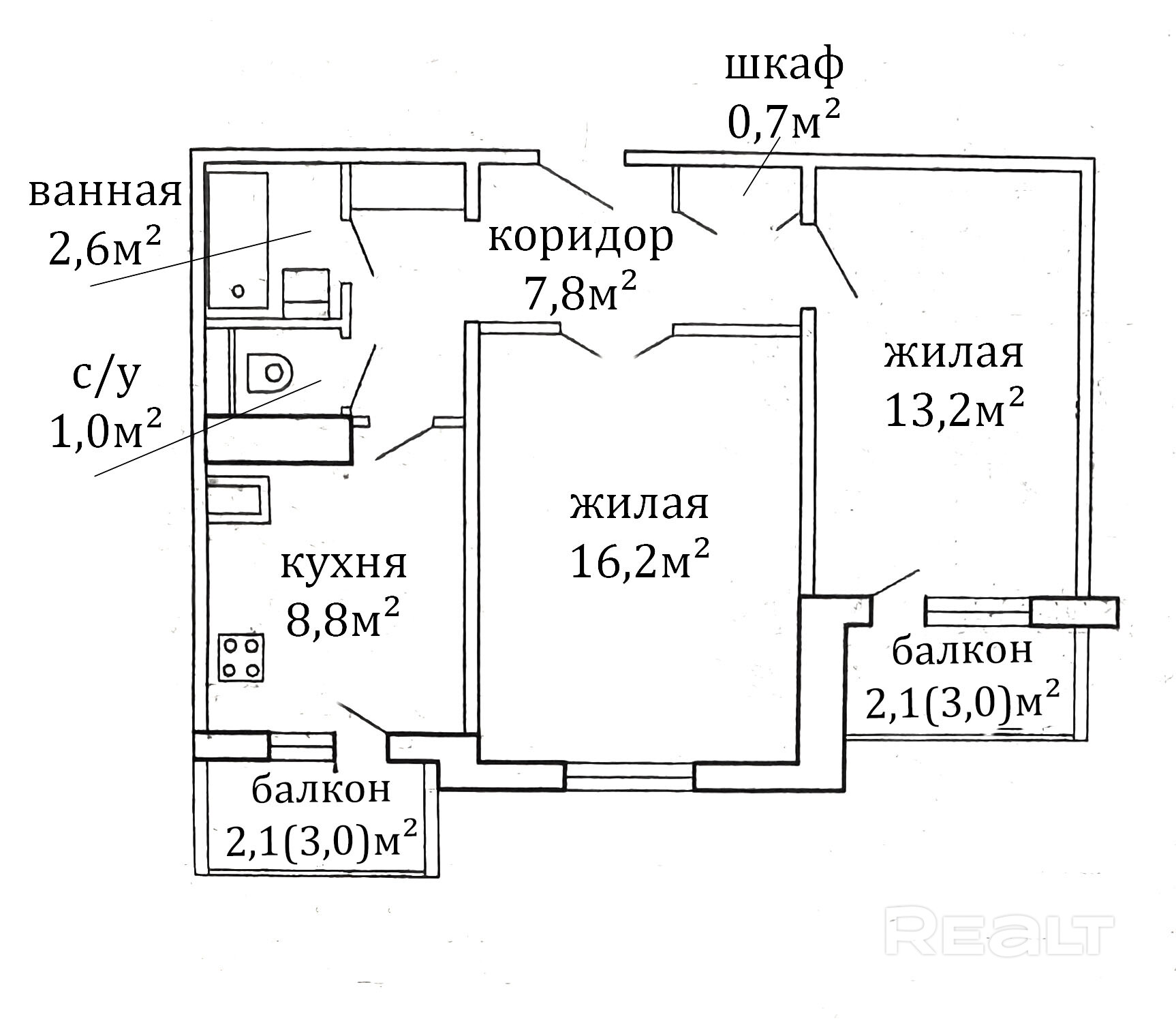 Общая площадь: 54,5 м2