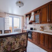 · Кухня 11,7 кв.м.: фасад из массива ивы. Стол и стулья из натурального дерева, спинки и сиденья обтянуты гобеленом (есть дополнительный гобелен для перетяжки при желании)