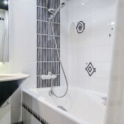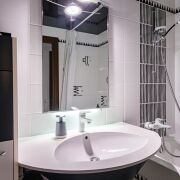 · Ванная: плитка (Италия, Испания) из дизайнерской коллекции. Ванна изготовлена из чугуна (Франция)