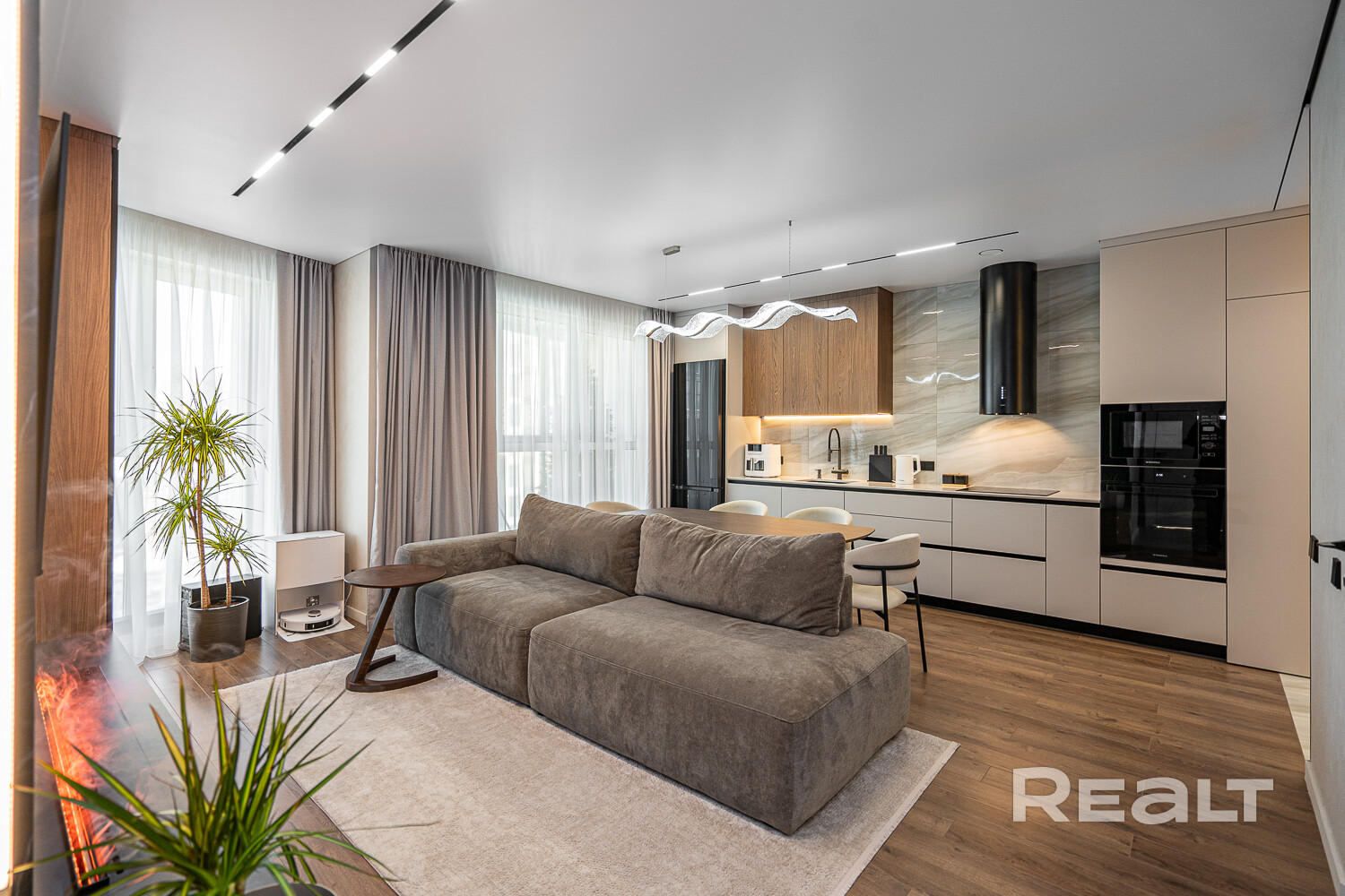 - Кухонная бытовая техника: варочная панель, духовая печь, встроенная микроволновка, вытяжка