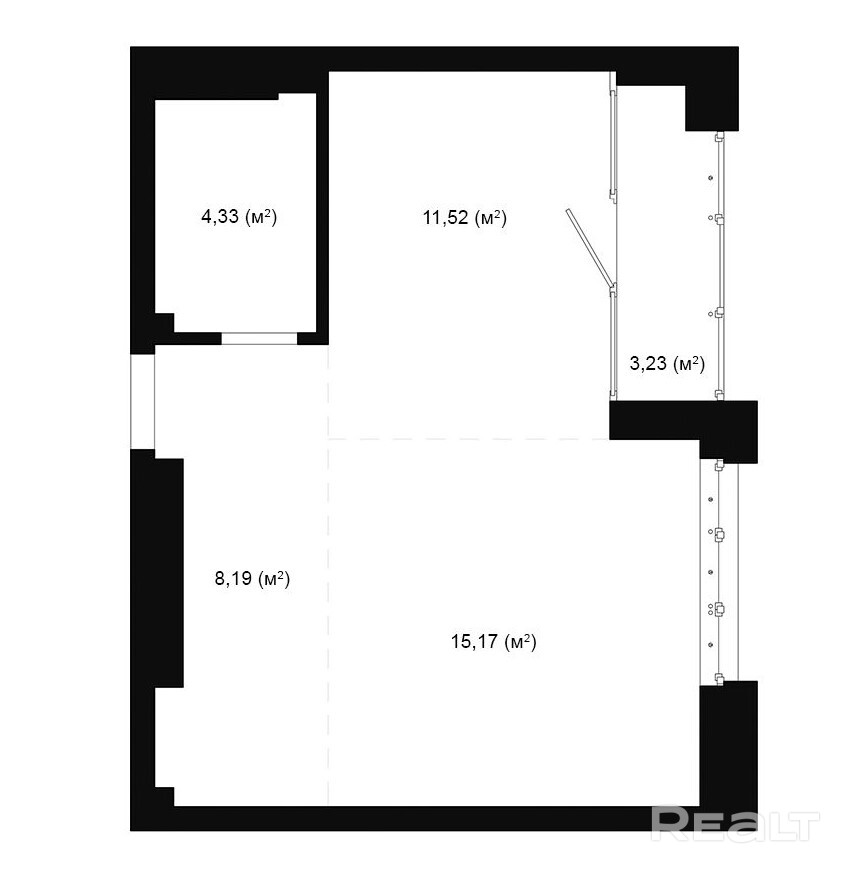 - квартира с формой правильной геометрии, есть возможность седлать евродвухкомнатную квартиру