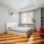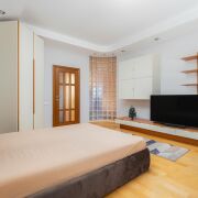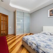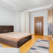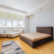 - Жилые комнаты просторные. Есть шкаф купе, дополнительные зоны хранения, подвесные потолки. В одной из комнат размещено эркерное окно. В отделке использованы стильные стеклянные блоки. Установлен кондиционер. Мебель итальянского производства.