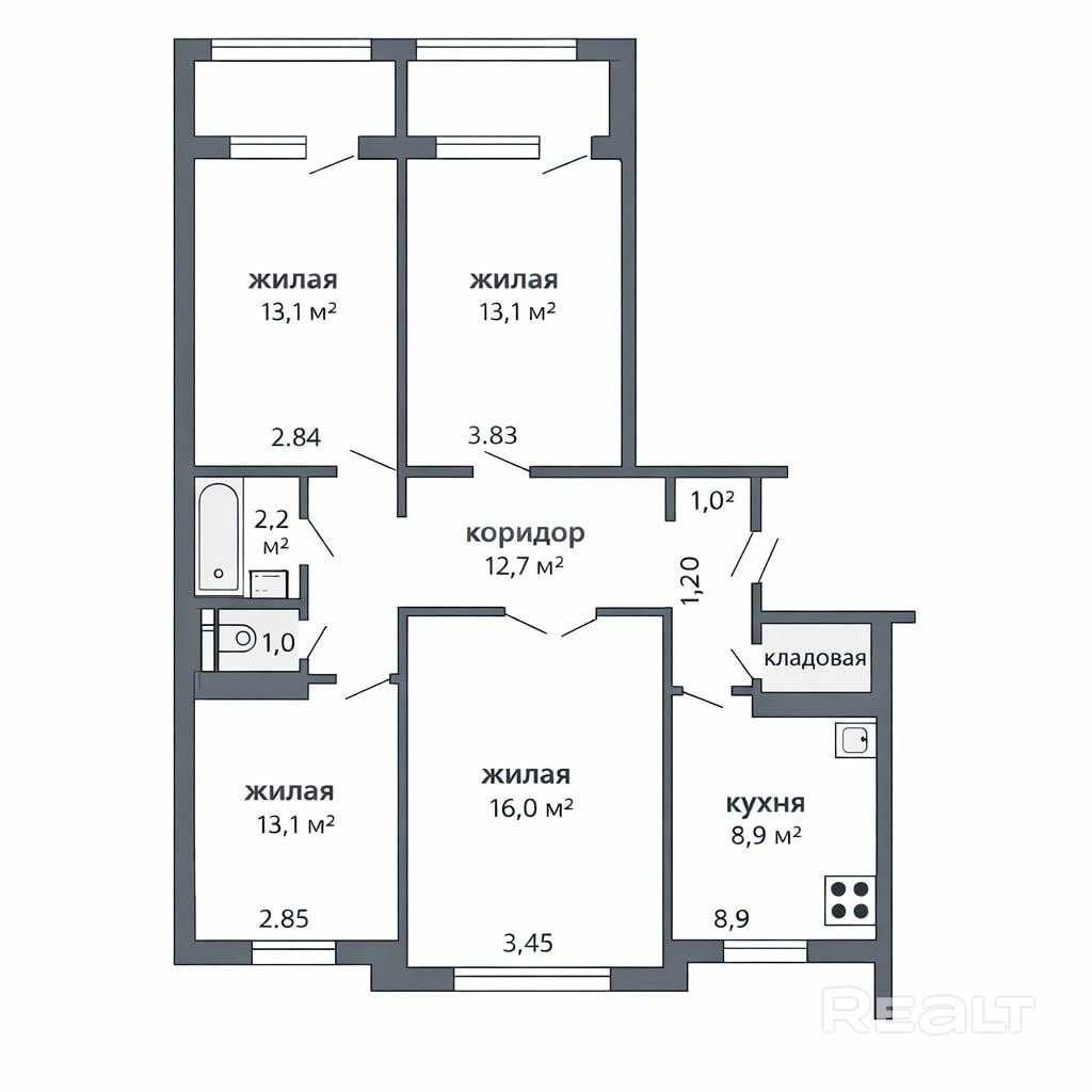 Продаётся просторная 4‑комнатная квартира в Лошице.