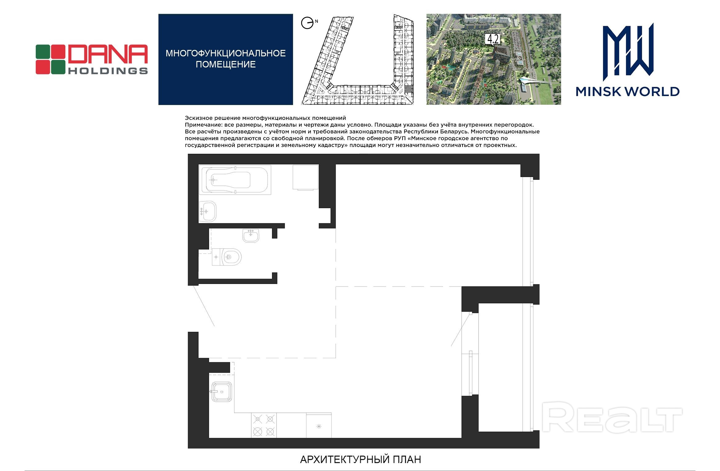 Высота от пола до потолка — 2,67 м. Большинство бизнес-апартаментов имеют панорамные окна, в каждом — лоджии.