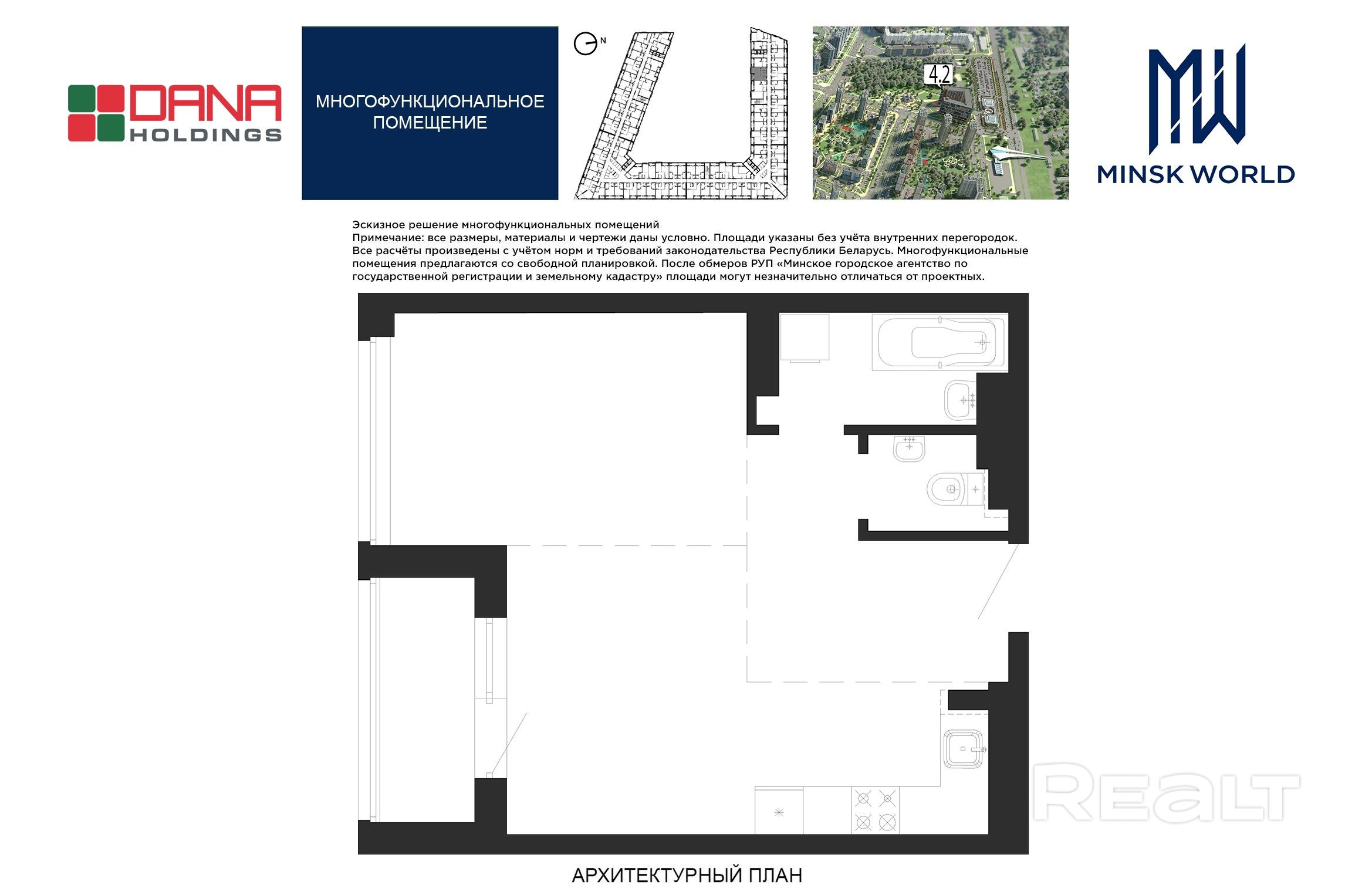 Высота от пола до потолка — 2,67 м. Большинство бизнес-апартаментов имеют панорамные окна, в каждом — лоджии.