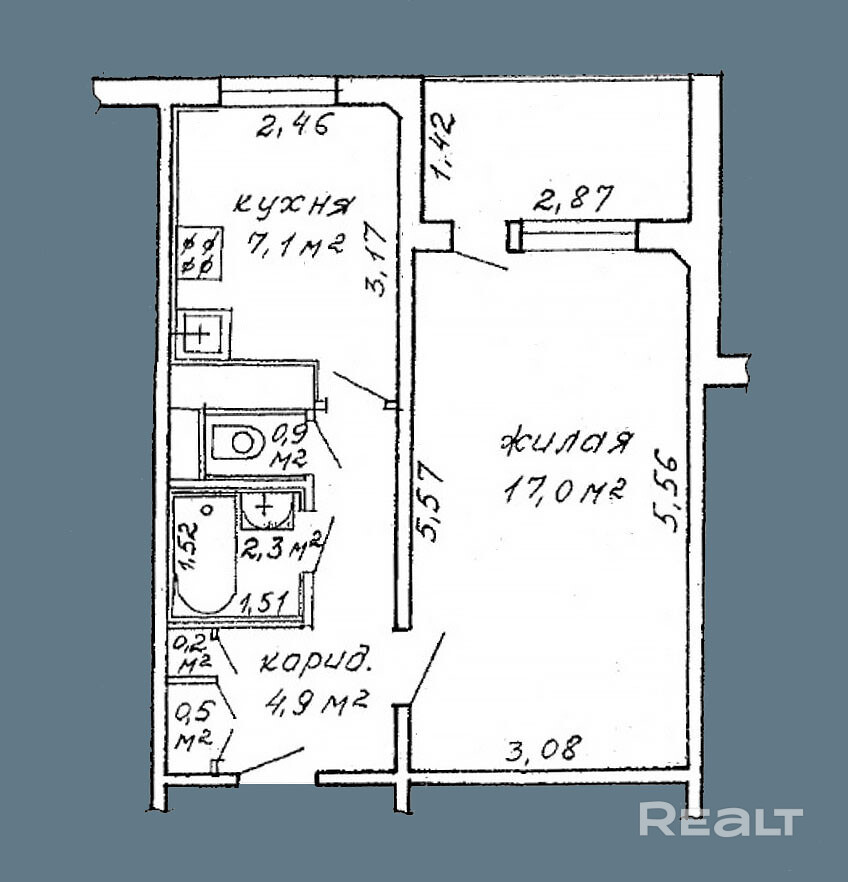 7.1 м²
