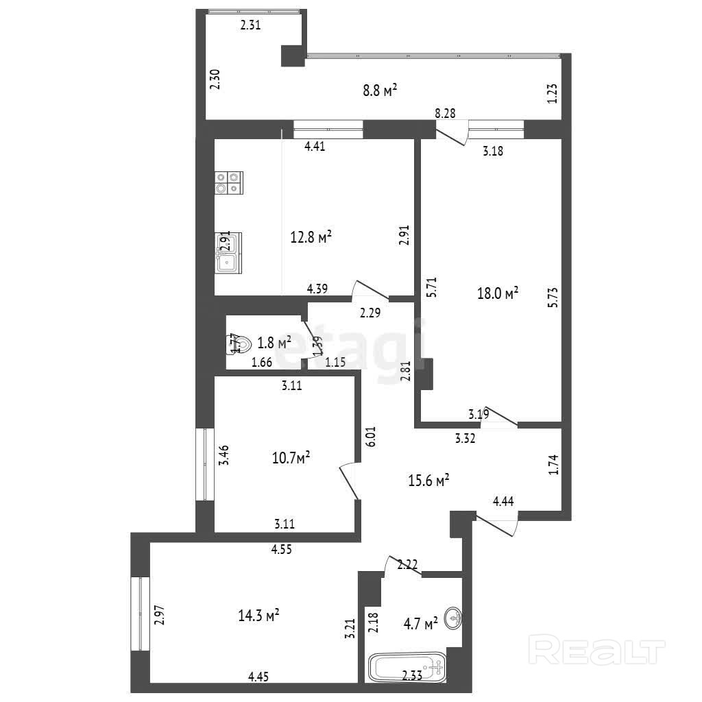 12.8 м²