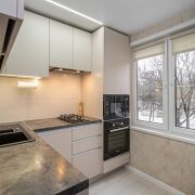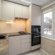 Заменена проводка и трубы (полипропилен), установлена новая встроенная кухня с импортной бытовой техникой (варочная панель, духовой шкаф, встроенная микроволновая печь, посудомоечная машина, стиральная машина), современная плитка в ванной и санузле.