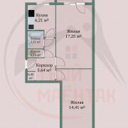 2 просторные комнаты – 17,25м2 и 14,41 м2, кухня 6,21м2, вместительный коридор.