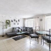 Две изолированные комнаты, огромная гостиная, оборудованная кухня, два санузла.
