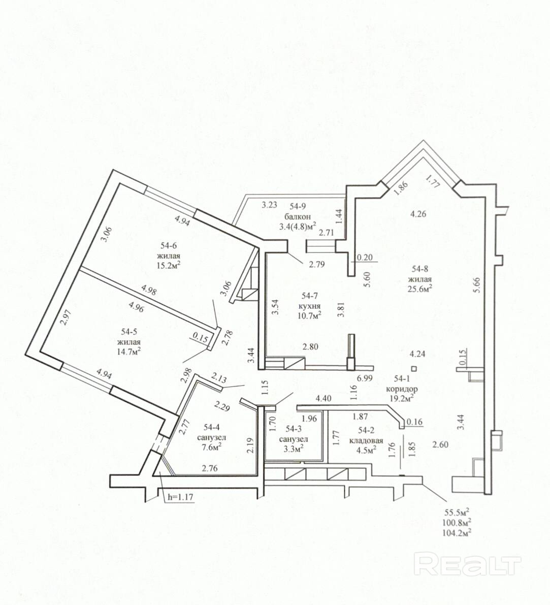 55.5 м²