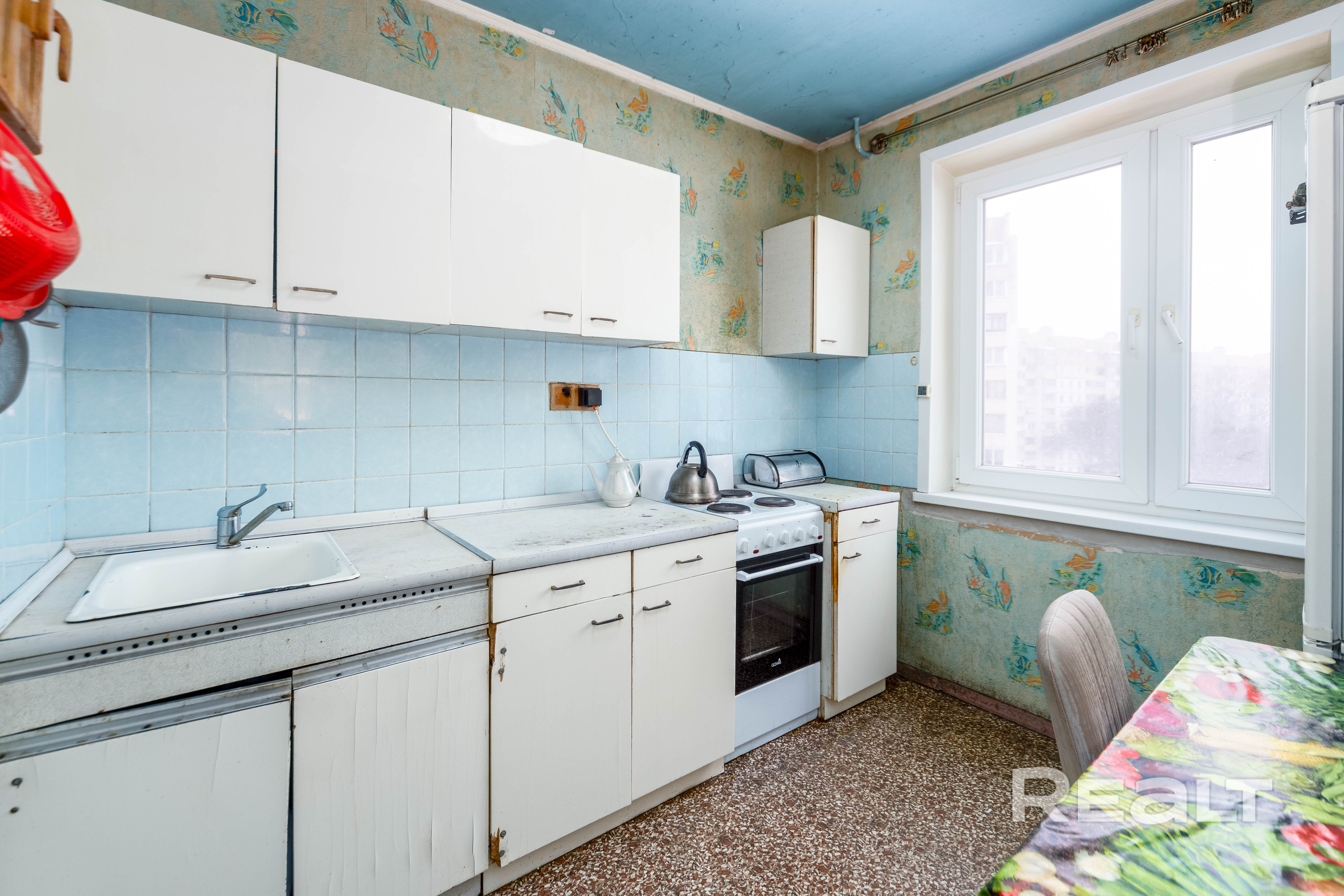 Входные двери в квартиру металлические, на полу линолеум. Окна квартиры выходят на две стороны дома: кухня, две комнаты- на западную сторону, проходная и маленькая комнаты – на восточную сторону. Требуется ремонт.
