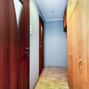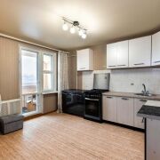 -В квартире выполнен аккуратный светлый ремонт в нейтральной гамме — пространство выглядит ухоженным и готовым к проживанию. Стены оформлены в спокойных оттенках, визуально расширяющих помещение. На полу уложены линолеум и кафель — практичные решения для ежедневной эксплуатации. Потолки ровные, установлены современные светильники с равномерным освещением. Межкомнатные двери выполнены в классическом древесном оттенке, создавая цельный и тёплый образ интерьера. НА входе стоит прочная металлическая дверь.