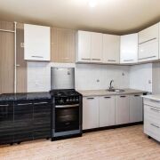 -Кухня почти 12 кв.м. — полноценное пространство для жизни, а не только для готовки. Установлен функциональный кухонный гарнитур с достаточным количеством мест хранения, рабочая зона отделана плиткой. Есть выход на застеклённую лоджию, которая добавляет света и может использоваться как дополнительная зона хранения или отдыха.