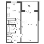 Отличная планировка: полноценная изолированная комната с выходом на застеклённую лоджию, кухня более 7 м2, раздельный санузел, в коридоре размещается вместительный шкаф.