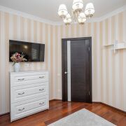 Элегантность и качество: Квартира выполнена в классическом стиле с использованием только высококачественных материалов, создавая атмосферу уюта и изысканности.