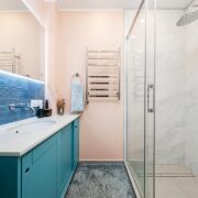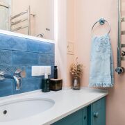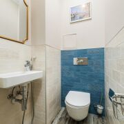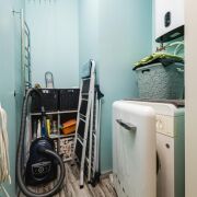 - Ванная и туалет раздельные. В отделке использована плитка, установлена сантехника высокого класса. Прачечная оборудована бойлером и дополнительной стиральной машиной, предусмотрены места для хранения бытовых принадлежностей.
