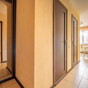 -Полы в жилых зонах покрыты качественным ламинатом, который не только долговечен, но и создаёт атмосферу уюта. На кухне и в прихожей уложена плитка. Установлены окна ПВХ, обеспечивающие отличную шумоизоляцию и теплоизоляцию, что делает пространство тихим и комфортным в любое время года. Все межкомнатные двери заменены на стильные и практичные, гармонирующие с общим интерьером.