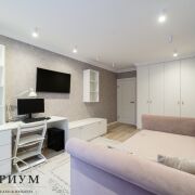 В детской — особая атмосфера: встроенная подсветка в карнизе создает сказочное настроение. Кровать с ортопедическим основанием и продуманное рабочее пространство создают комфортные условия для роста и развития.