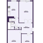 3-комнатная квартира, 64,7 м², с лоджией