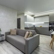 Большая площадь квартиры позволяет организовать каждому члену семьи собственное пространство.